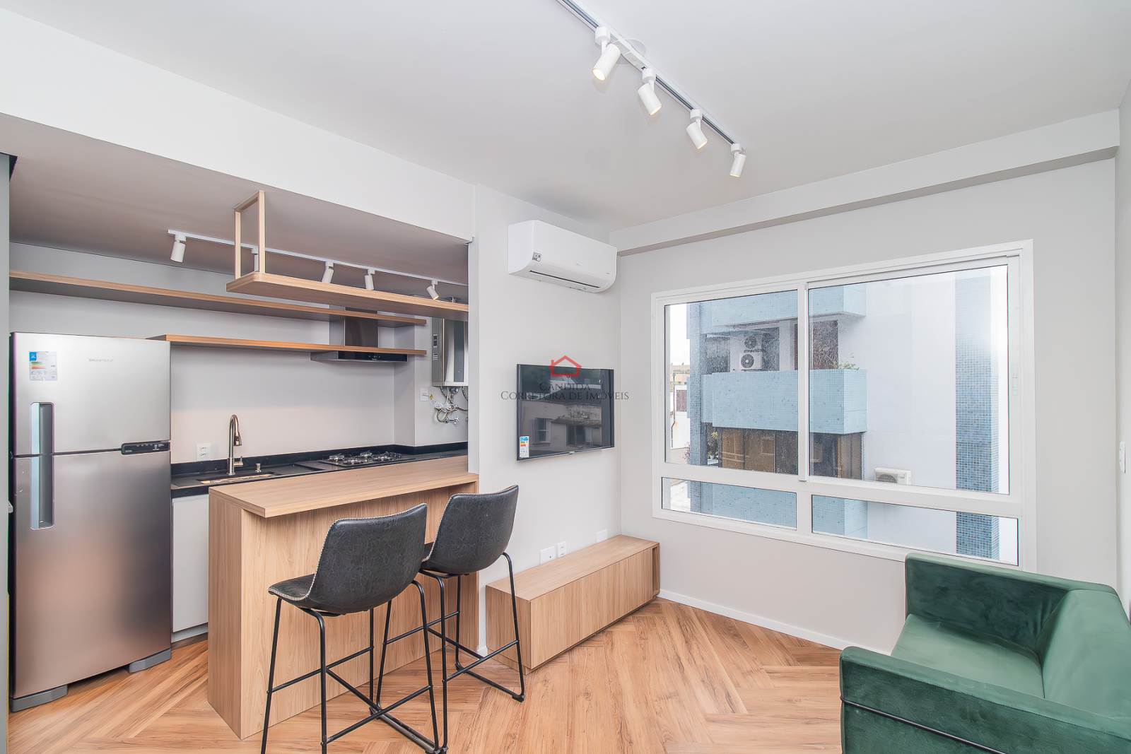 Apartamento novo com móveis sob medida, eletrodomésticos e churrasqueira no bairro Moinhos de Vento, conhecido por sua sofisticação e comodidade. Com uma suíte espaçosa, o imóvel é ideal para quem busca conforto e privacidade. A planta do apartamento conta com um dormitório, banheiro, uma sala de estar e jantar integrados e um lavabo. Com dois splits instalados, oferecendo um ambiente aconchegante e versátil para receber amigos e familiares. A cozinha é funcional, equipada com churrasqueira. Uma vaga de garagem escriturada. A infraestrutura inclui uma lavanderia compartilhada, piscina para momentos de lazer e descanso, um salão de festas e uma área gourmet. Este apartamento é uma excelente oportunidade para quem deseja morar em um dos bairros mais valorizados de Porto Alegre, com acesso fácil a serviços, lojas e restaurantes de alta qualidade.