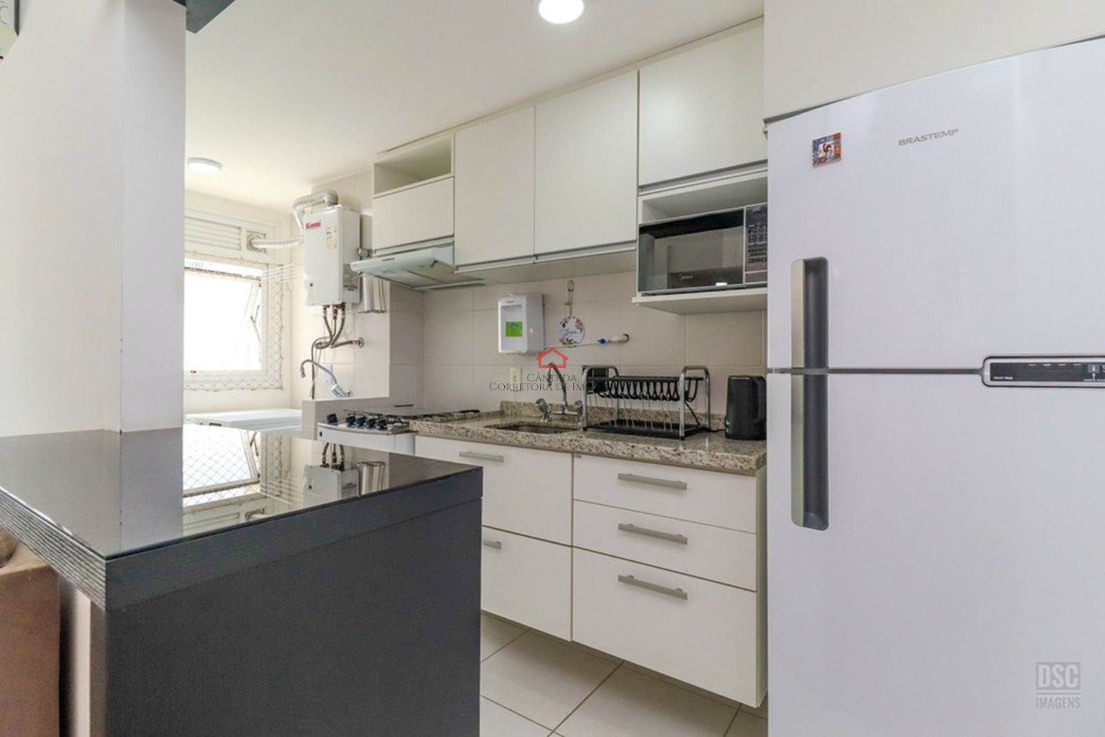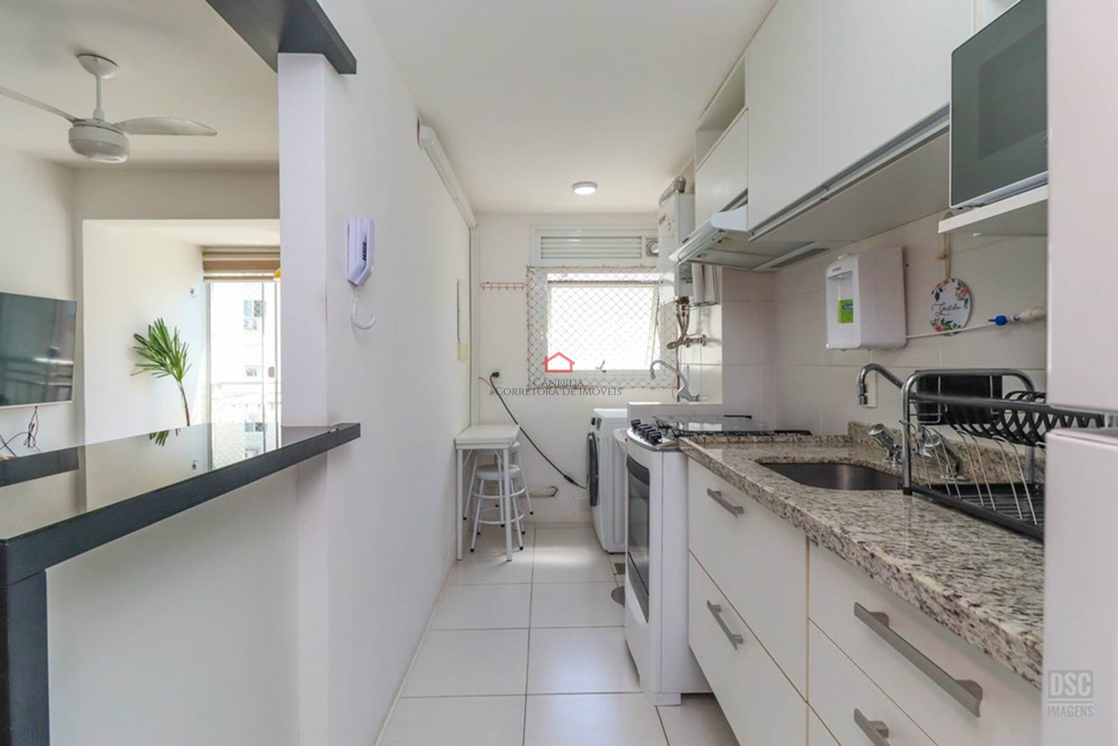 O living se divide em 2 ambientes aconchegantes e sacada integrada com churrasqueira. A cozinha americana é mobiliada e equipada. Possui 2 dormitórios, sendo 1 suíte.