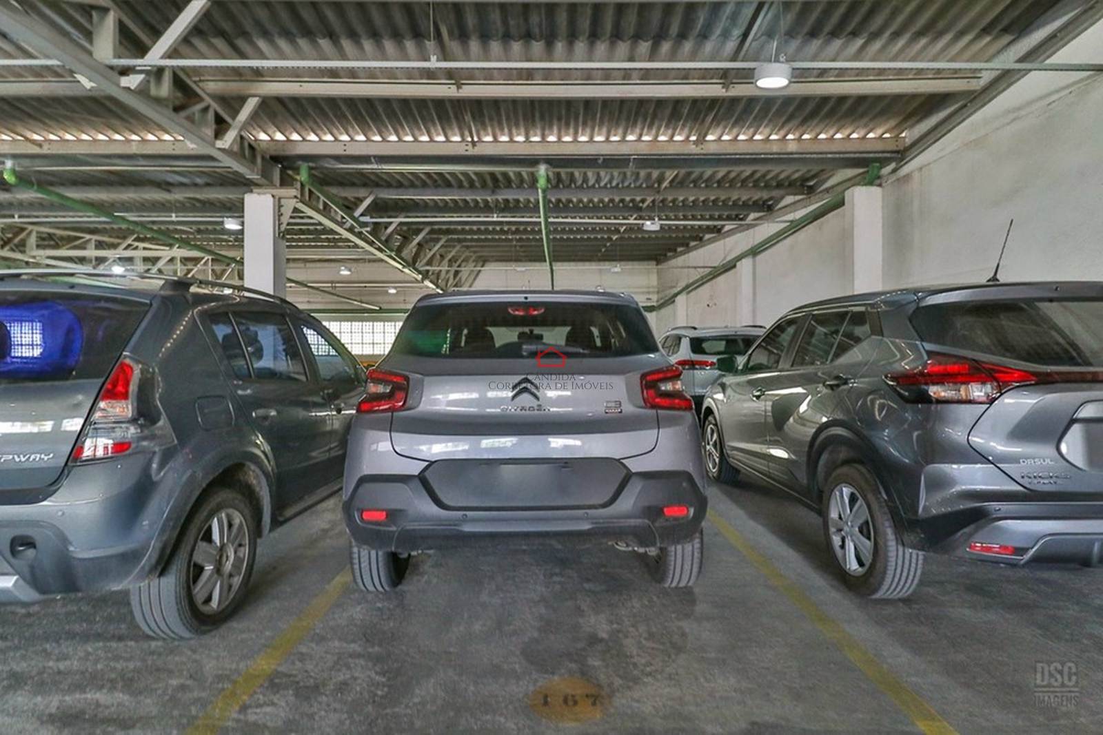 Uma vaga de garagem coberta.