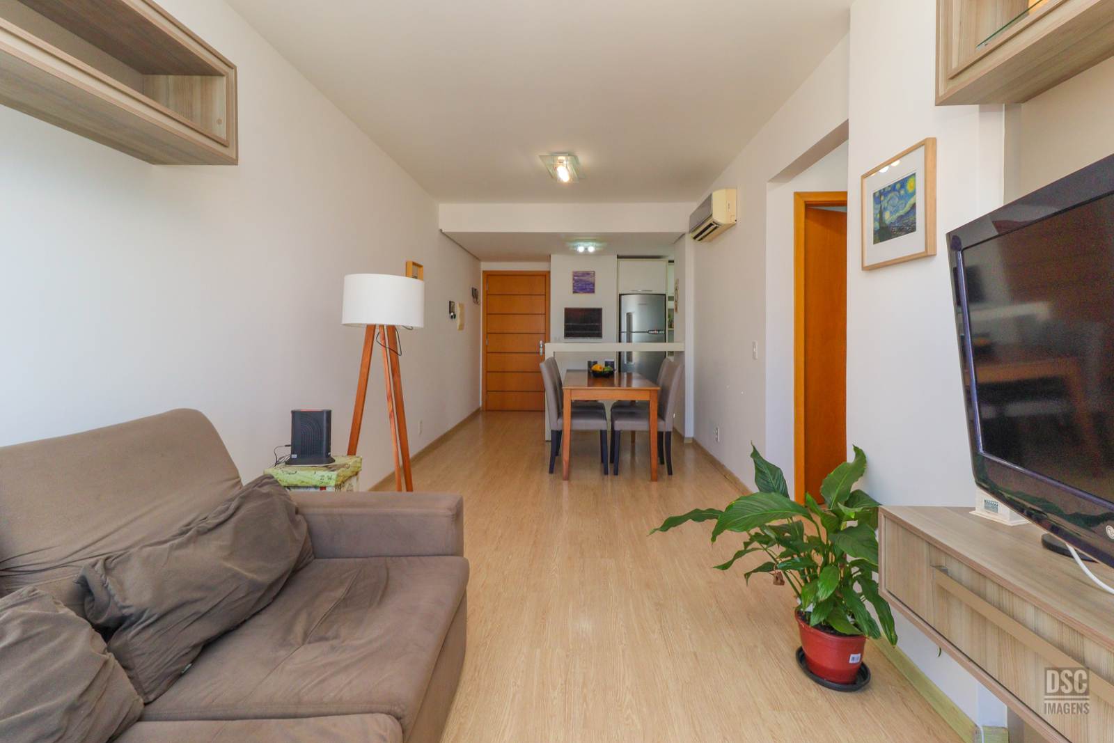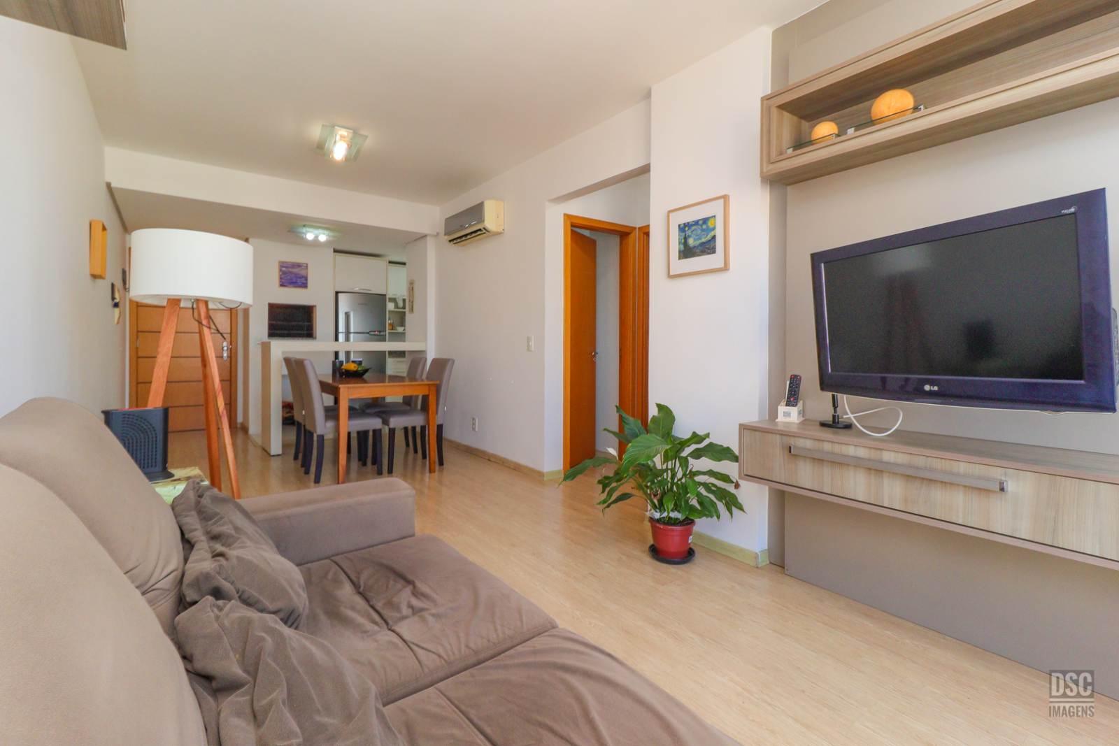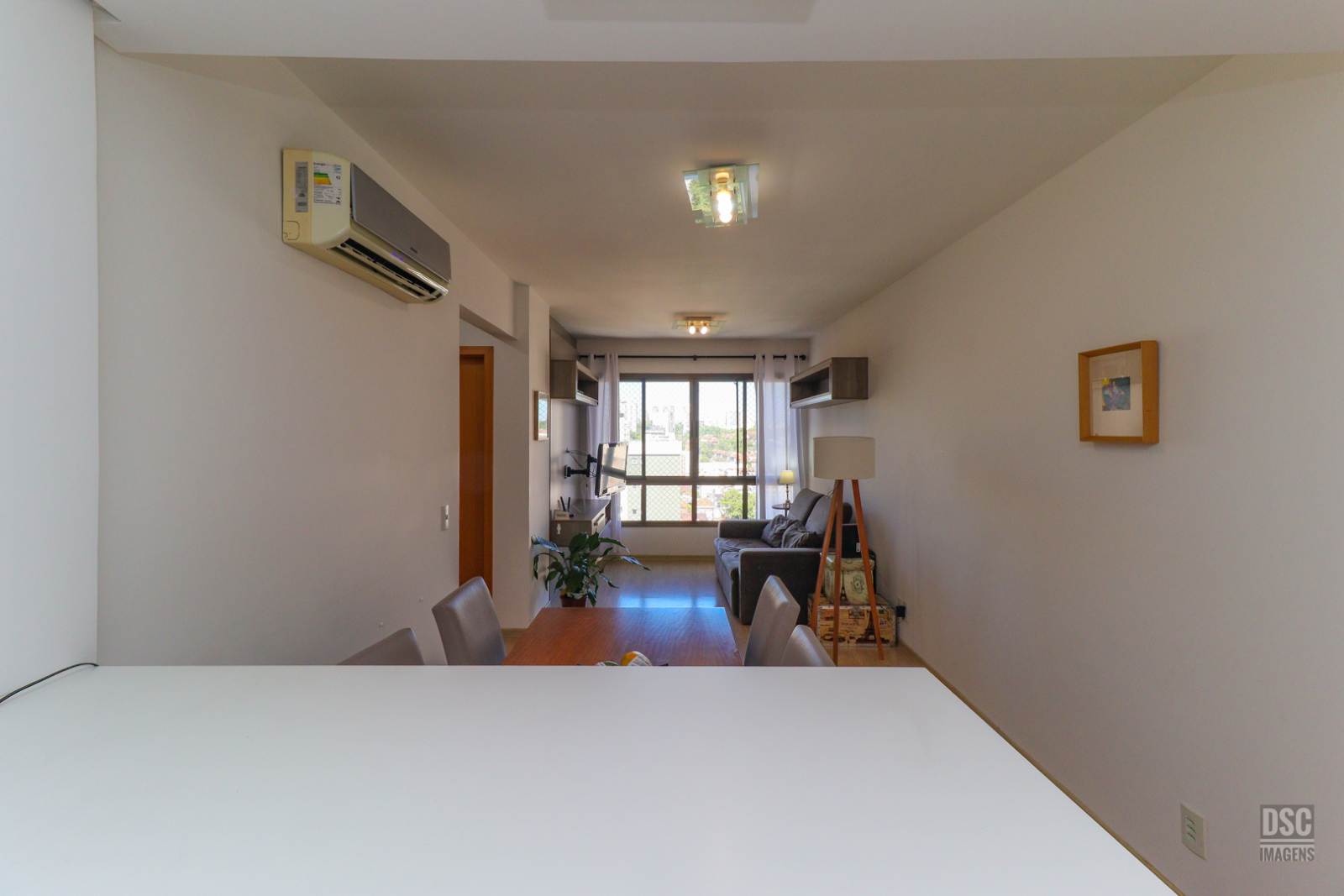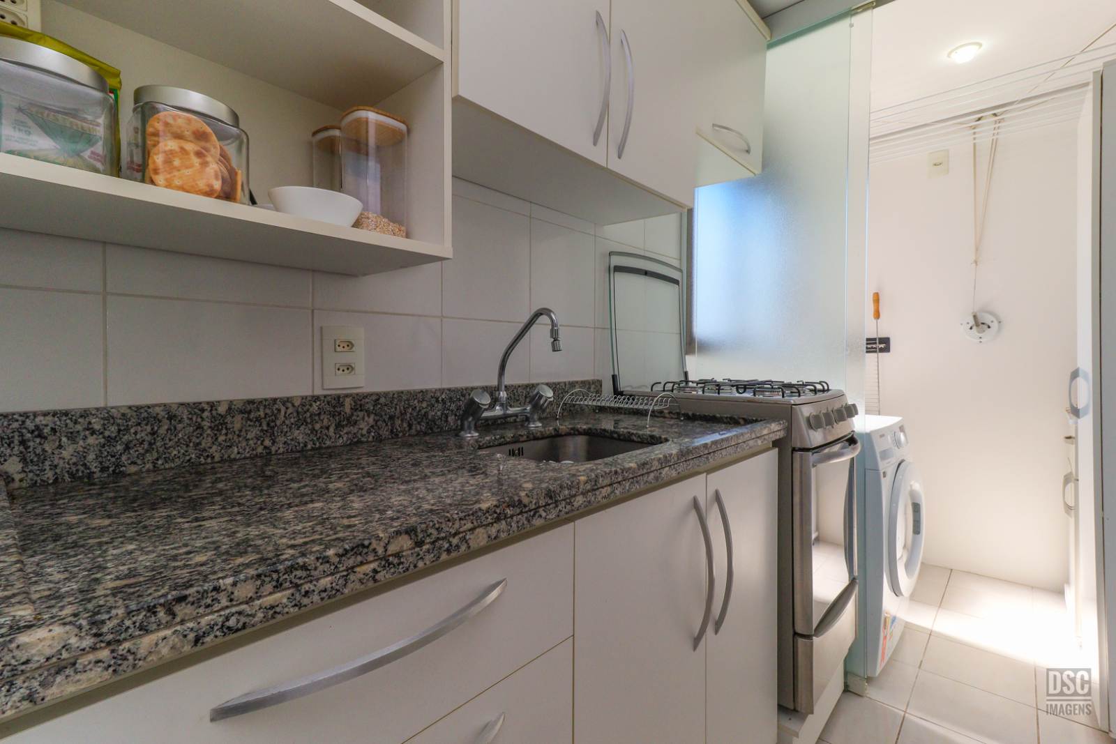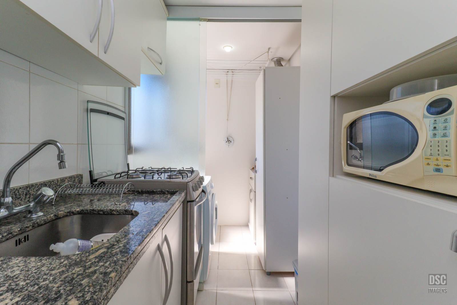 Com preço abaixo do valor de mercado por 530 mil reais, você adquire um apartamento com 66m² de área privativa, sala de jantar e estar integradas com cozinha americana, lavanderia, 2 quartos sendo 1 suíte e banheiro social. Apartamento clean, bem conservado, em andar alto com vista livre, semimobiliado. 1 vaga de garagem coberta e fixa.