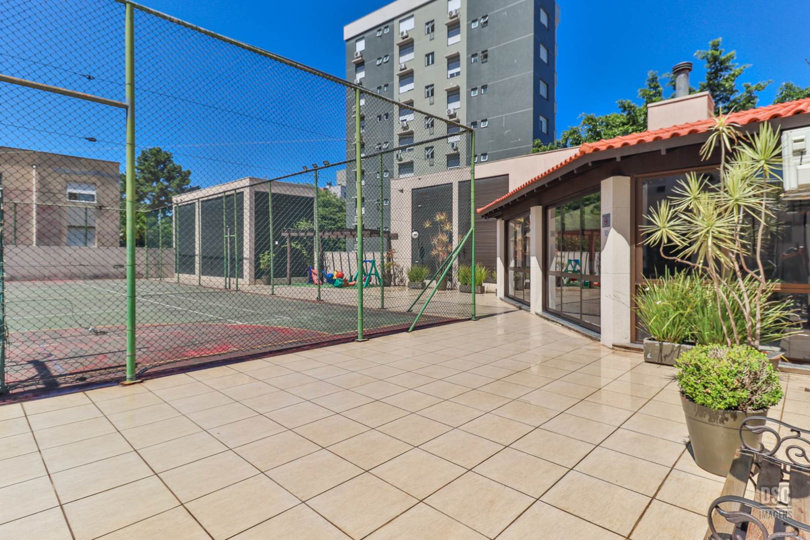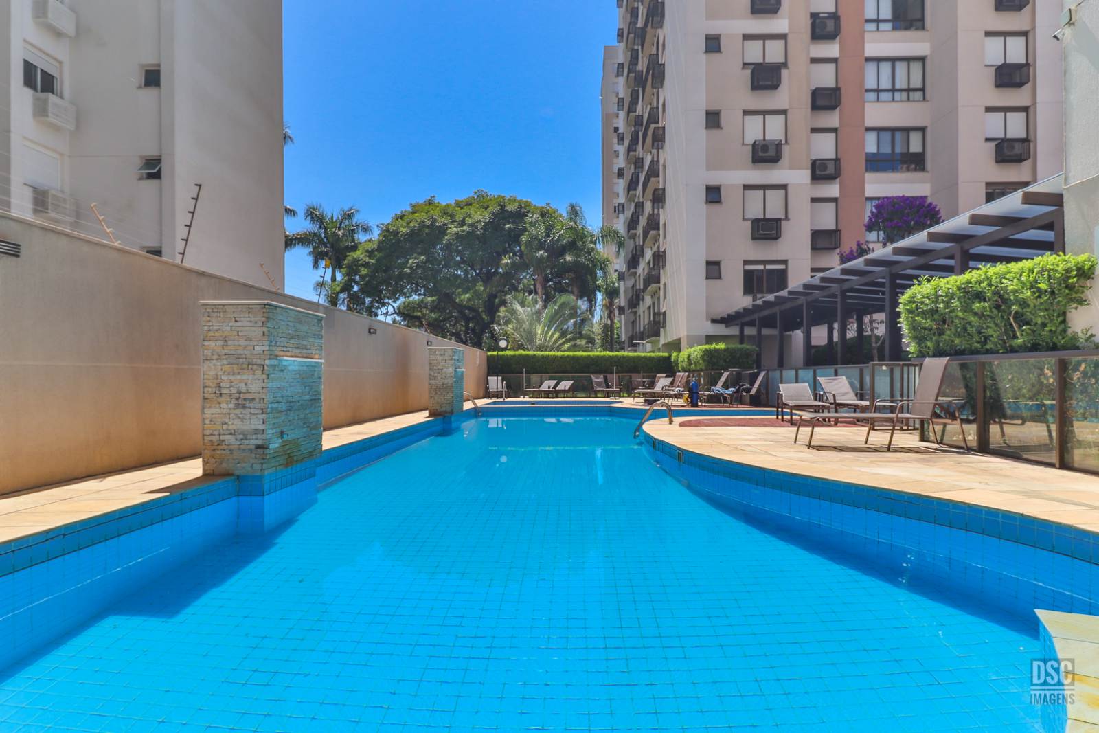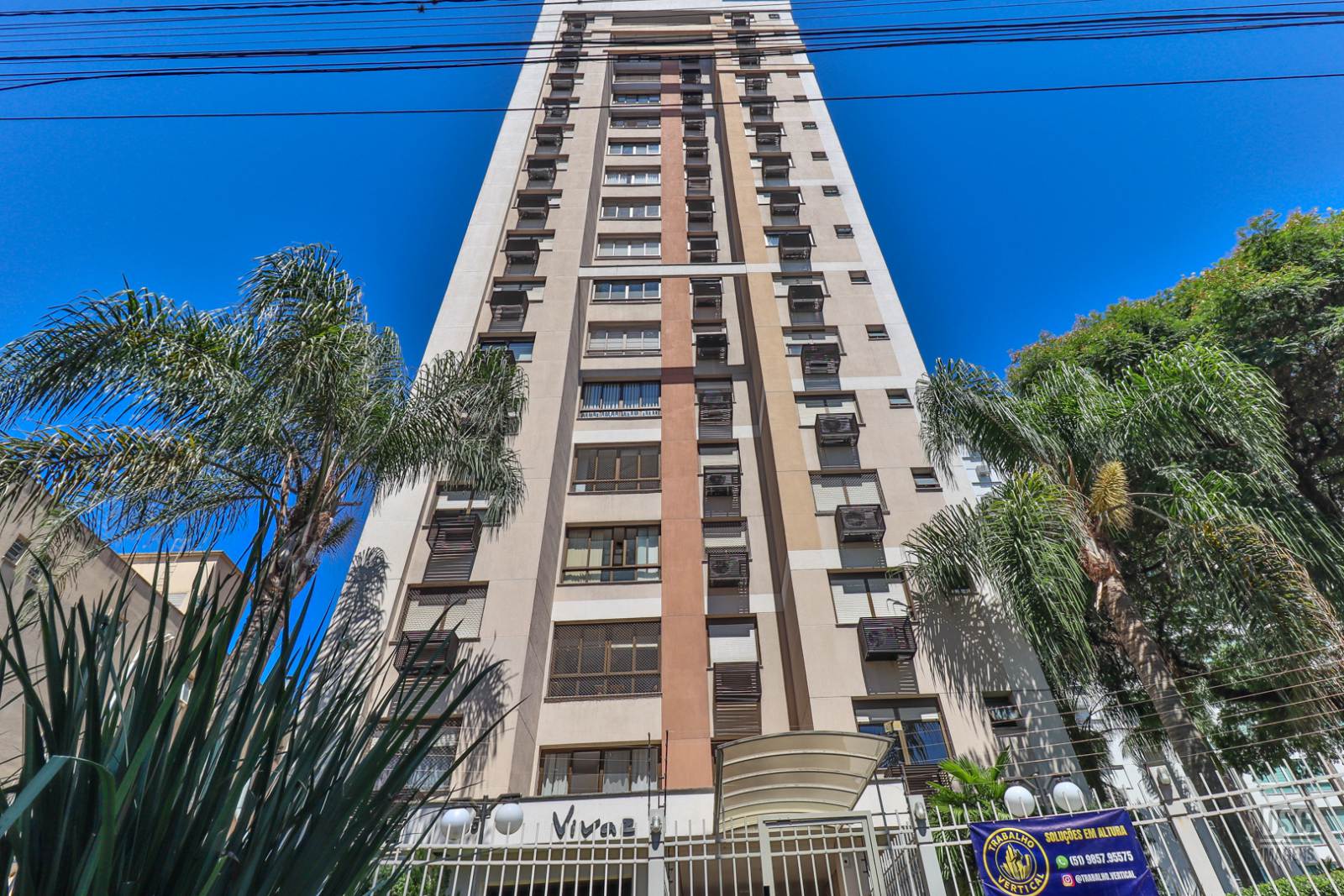 Com 2 torres de 15 pavimentos, 2 elevadores, portaria 24h, o Condomínio VIVAZ tem infraestrutura de lazer completa com piscina adulto e infantil, 2 salões de festas muito bem equipados, churrasqueira recém reformada, quadra poliesportiva, academia, playground externo e sala de jogos.