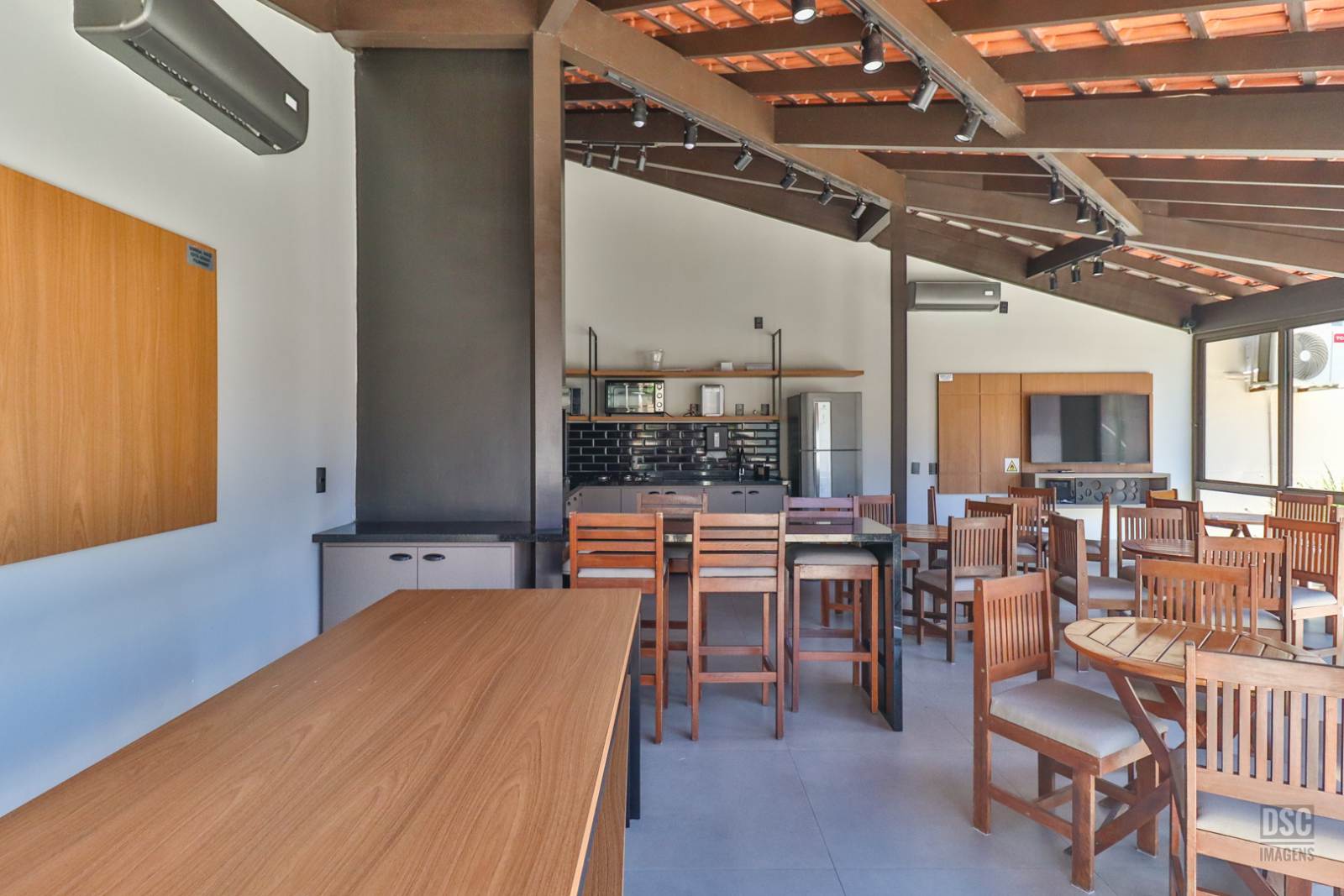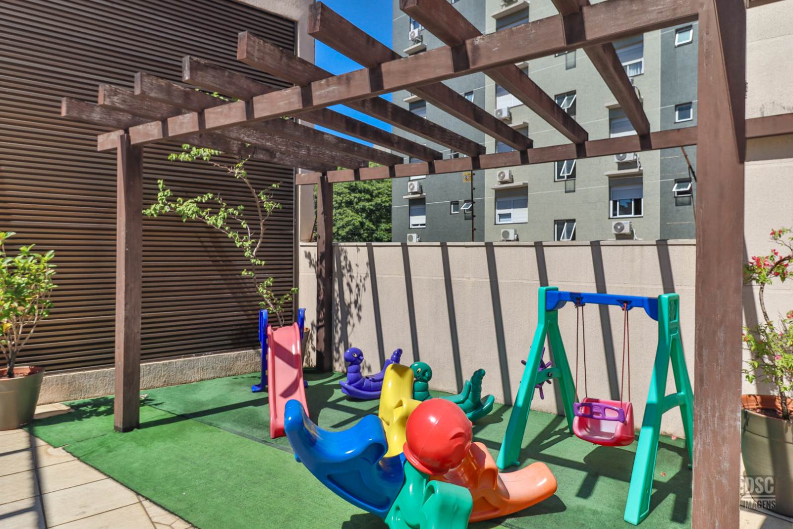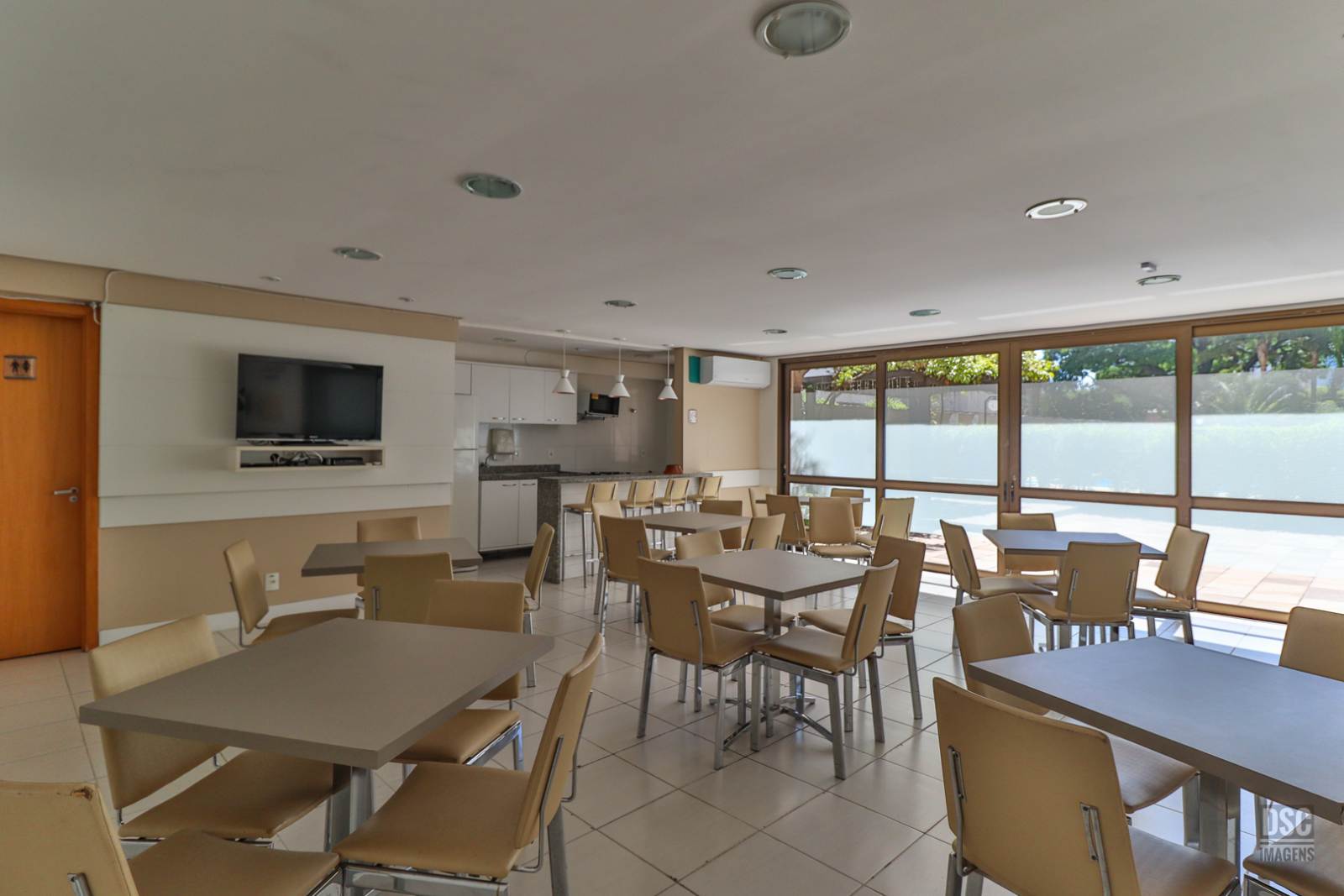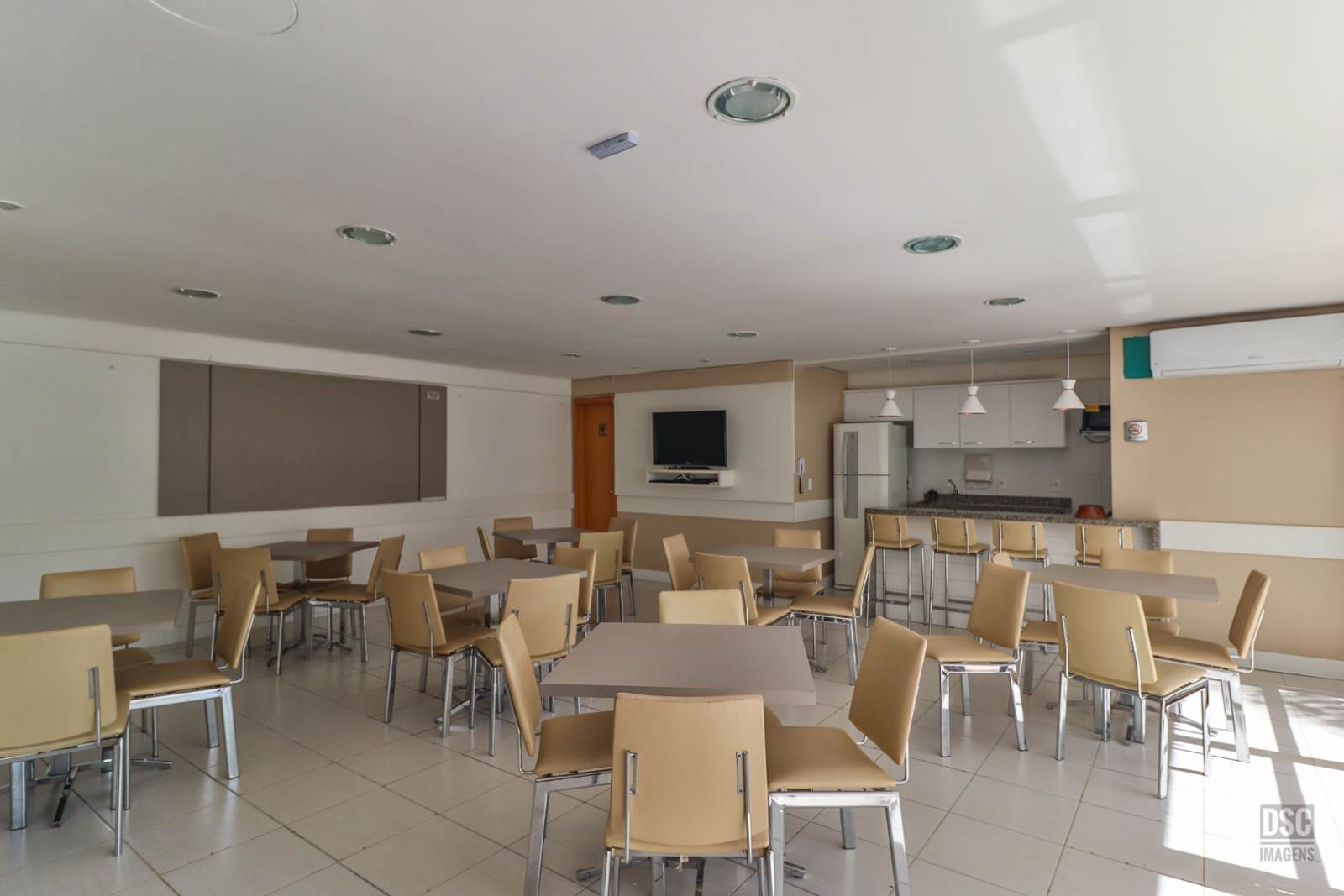 Com 2 torres de 15 pavimentos, 2 elevadores, portaria 24h, o Condomínio VIVAZ tem infraestrutura de lazer completa com piscina adulto e infantil, 2 salões de festas muito bem equipados, churrasqueira recém reformada, quadra poliesportiva, academia, playground externo e sala de jogos.