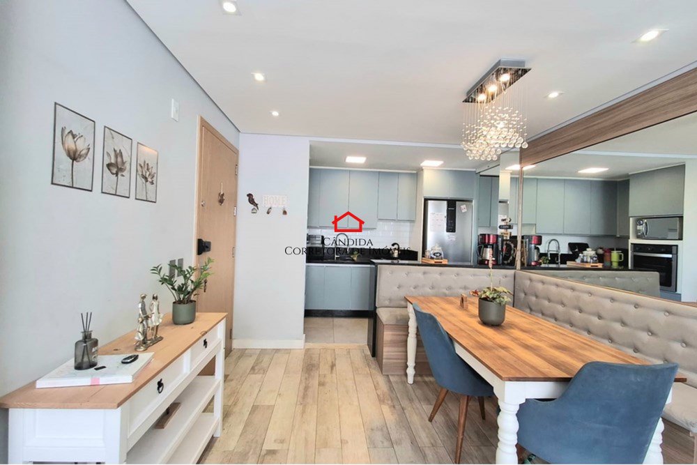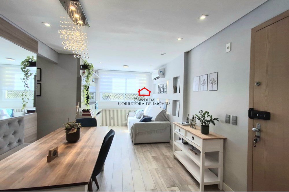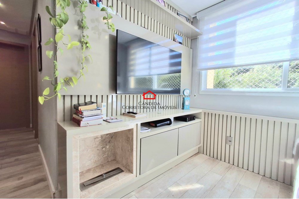 Excelente apartamento semimobiliado de 3 dormitorios sendo 1 suíte, cozinha americana com living 2 ambientes, excelente posição solar e ventilado, finamente decorado com piso em porcelanato. Ficam os móveis fixos (planejados), splits, aquecedor à gás, cooktop, forno eletrico, luminárias com lâmpadas de led, rebaixo de gesso, fechadura eletrônica, 1 vaga de garagem.