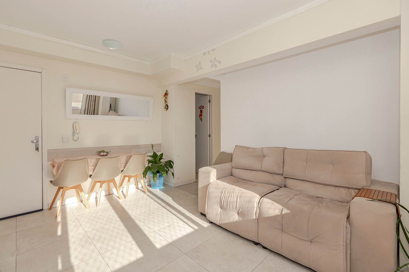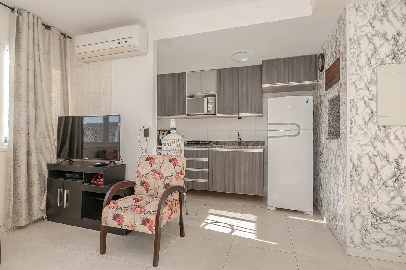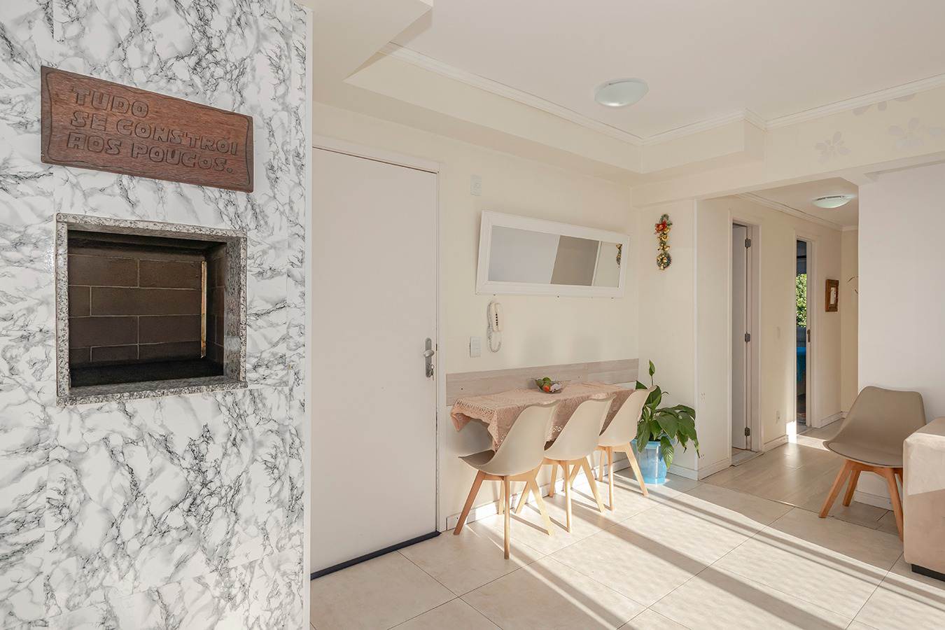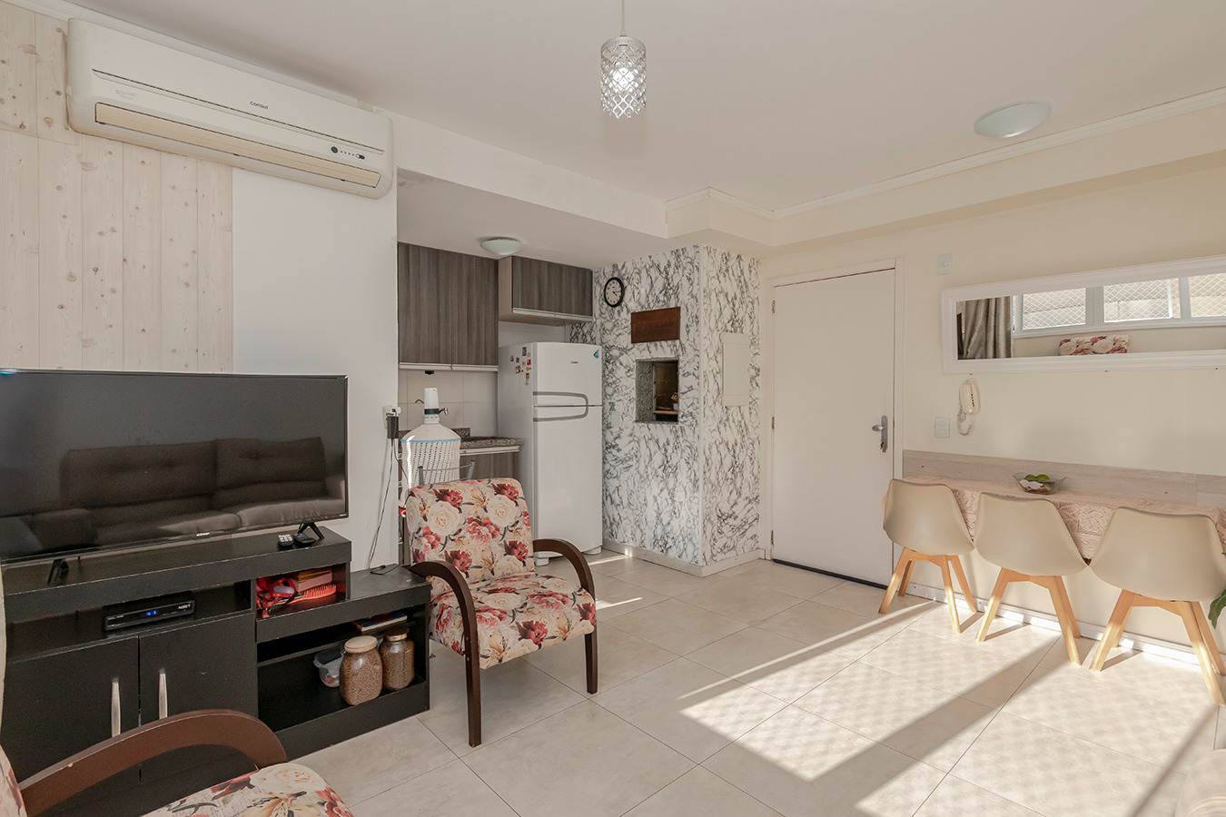O imóvel se destaca pelo living estendido, que proporciona um ambiente amplo, integrado e aconchegante — perfeito para receber amigos e familiares com muito estilo.
