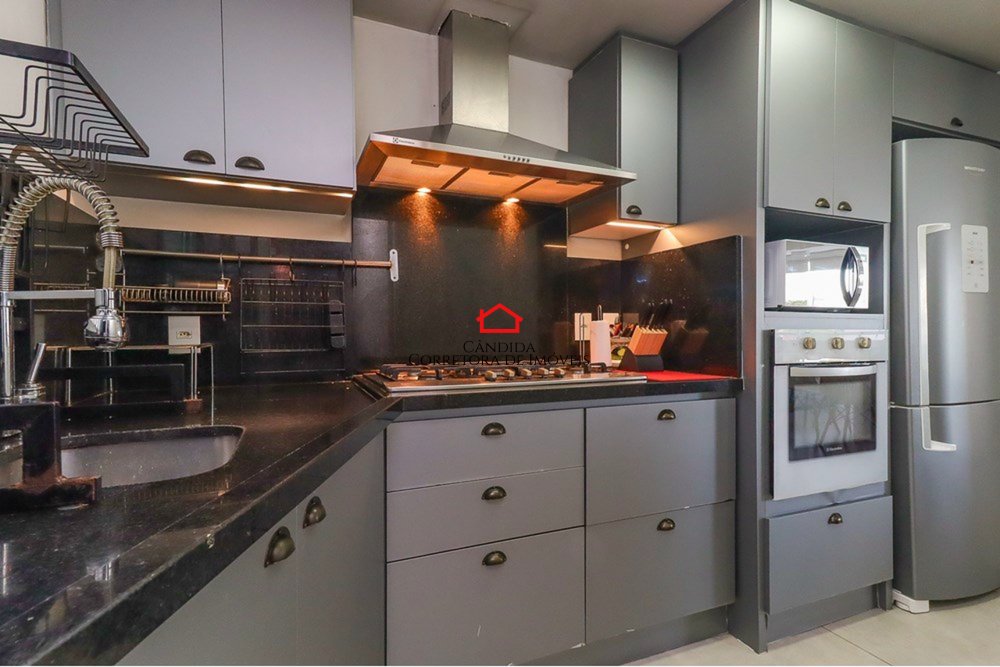 O living se divide em 2 ambientes aconchegantes, com lavabo e sacada integrada. A cozinha americana, mobiliada, com churrasqueira.