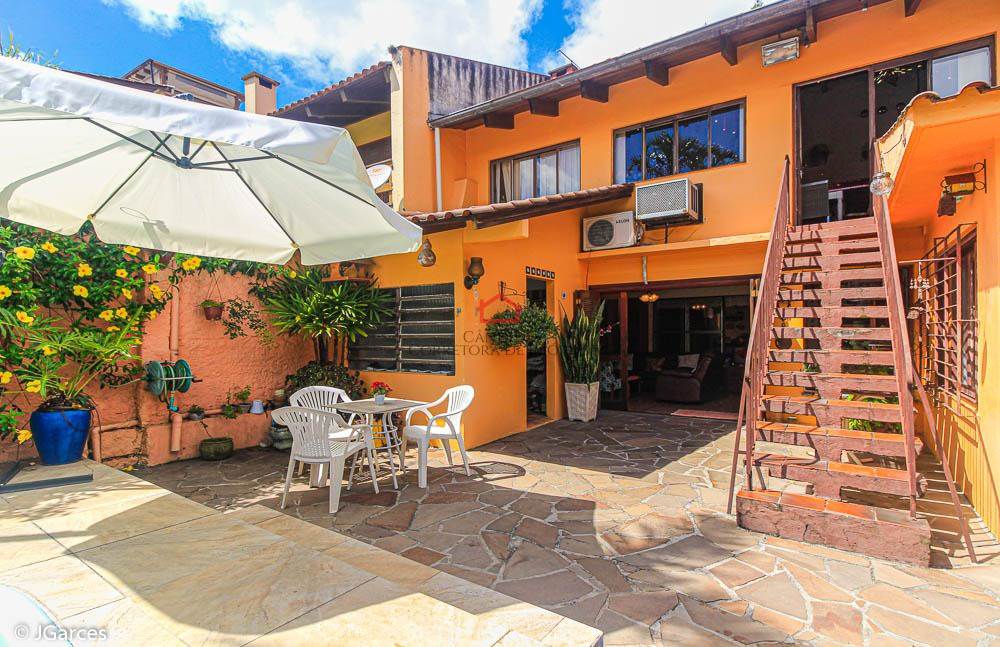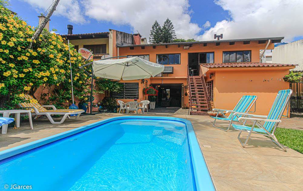 Linda casa de 4 dormitórios, 5 banheiros no bairro Cristal., Casa de dois andares com uma ótima área de jardim na frente da casa. No pavimento térreo tem um amplo living com lareira, sala de jantar, sala de televisão envidraçada e muito iluminada, escritório e uma suíte para visita, cozinha e jardim de inverno. No andar superior encontramos 3 suítes com closet. Nos fundos da casa temos um ótimo pátio com piscina e um laguinho com carpas; um salão de festas com churrasqueira e lavabo, um espaço para depósito e lavanderia, garagem para 04 carros e pátio com piscina.