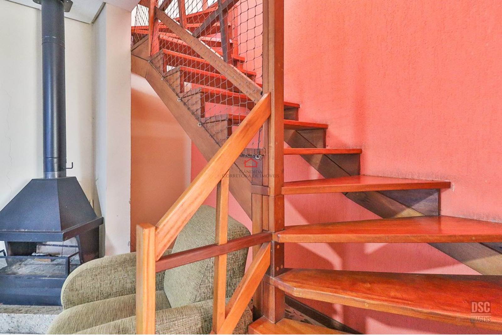 Os dormitórios são bem amplos, há um closet na suíte principal, além de ventiladores de teto em vários ambientes. A propriedade possui chuveiro a gás, lareira, depósito, dependência de empregada e área de serviço completa. Com dois andares, a casa tem mais de um espaço de estacionamento para visitantes e uma garagem com duas vagas privativas.
