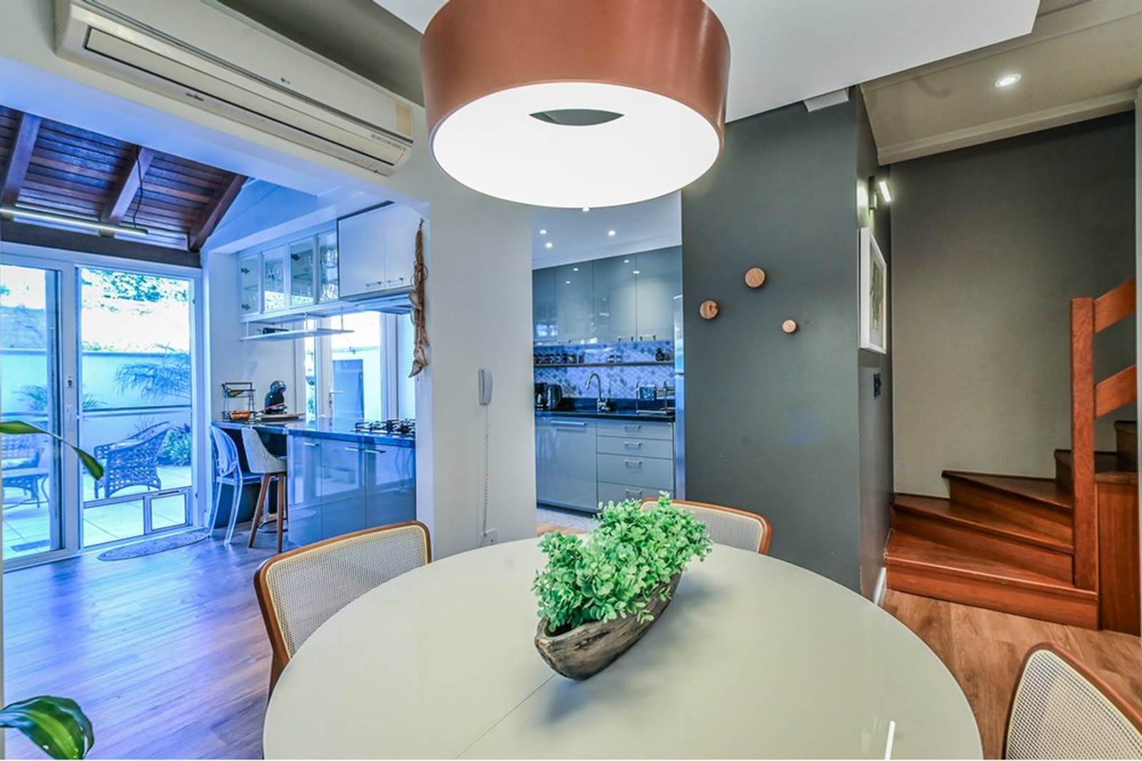 Entre as inúmeras características da propriedade, destacam-se o espaço gourmet com churrasqueira, um quintal com jardim e a possibilidade de ter animais de estimação. A casa também conta com áreas integradas, armário embutidos, cozinha gourmet em conceito aberto com a sala de jantar e estar. Para aqueles que valorizam o conforto, ar condicionado, e chuveiro a gás e no terceiro piso temos uma lavanderia equipada, uma sala de tv ou estudos ou mesmo um espaço para home office e um terraço com muito sol para estender as roupas da família ou aquele chimarrão ou bronzeamento no verão.