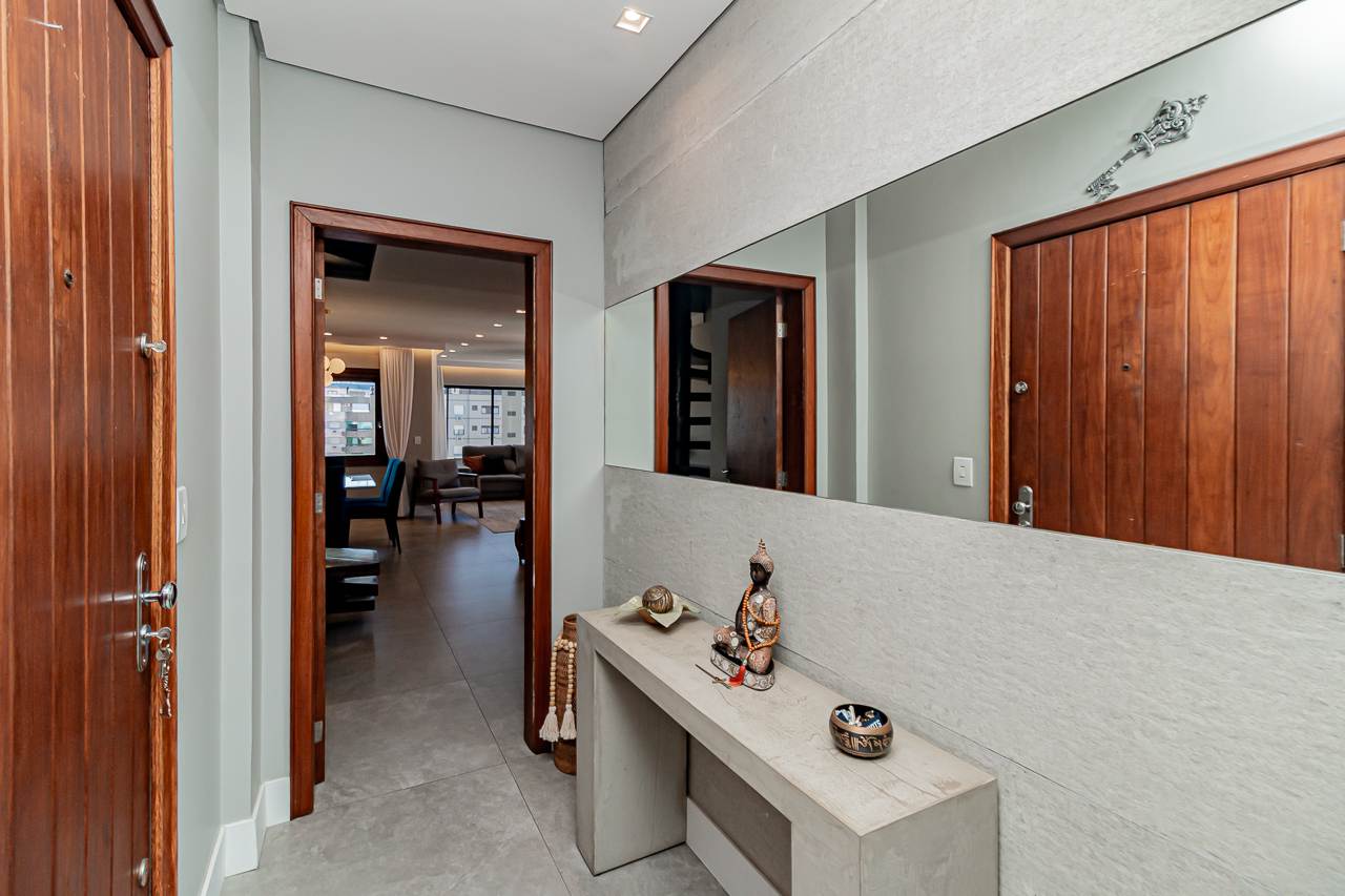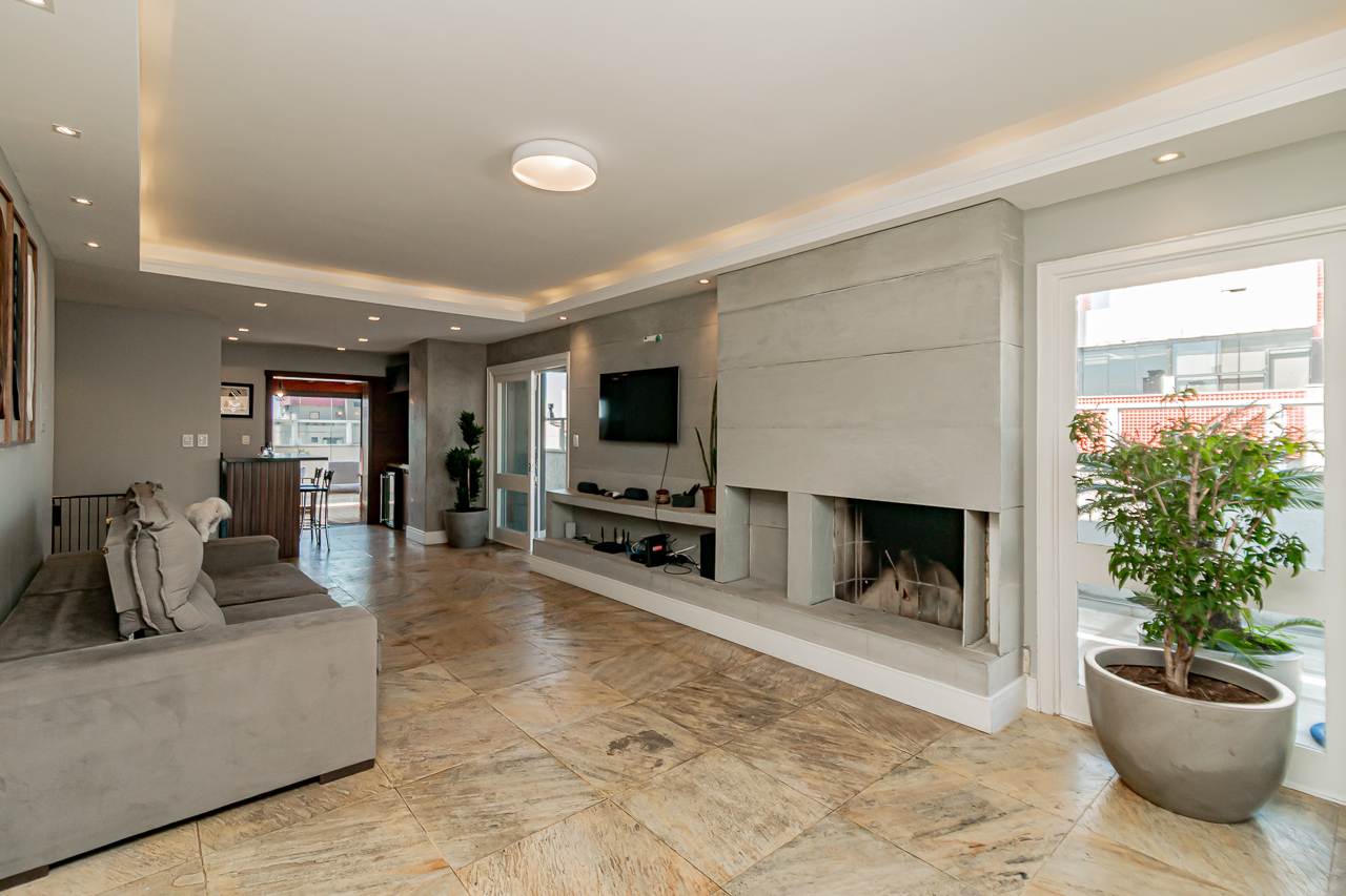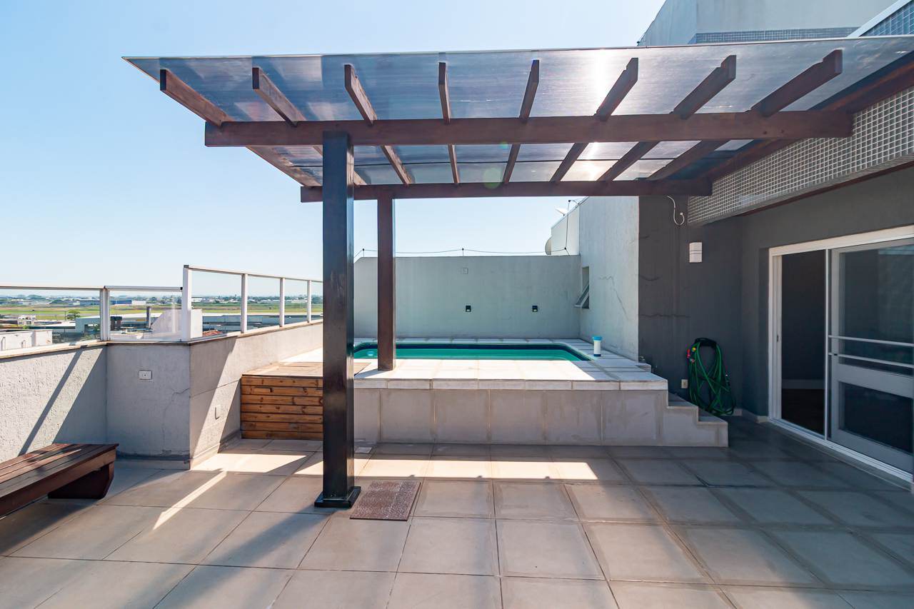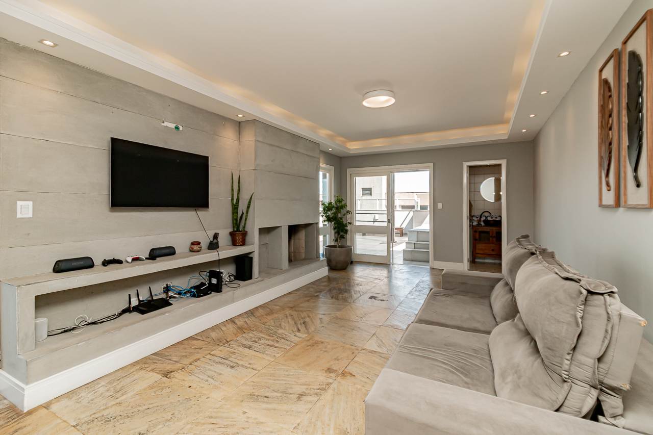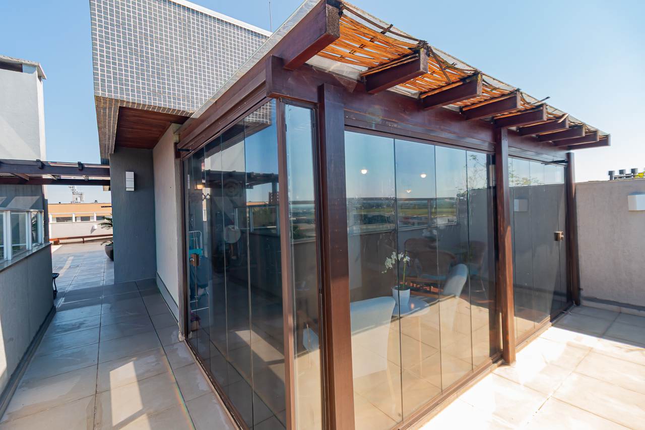 A propriedade oferece piscina, lareira, espaço gourmet com churrasqueira, varanda gourmet, e um terraço com vista aberta que tornará cada pôr do sol um espetáculo particular. Para seu conforto adicional, a cobertura conta com ar condicionado central, aquecimento elétrico e chuveiro a gás.