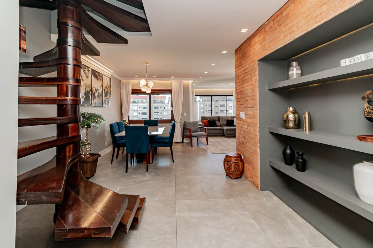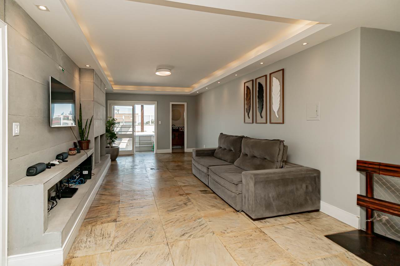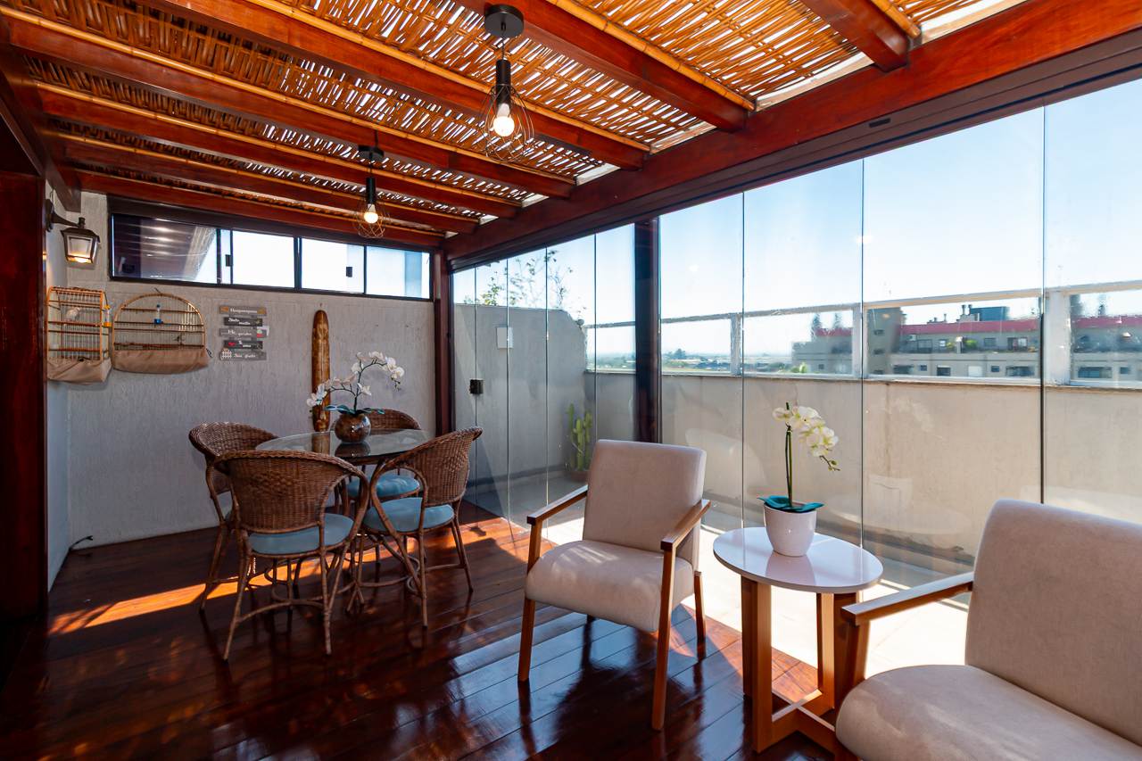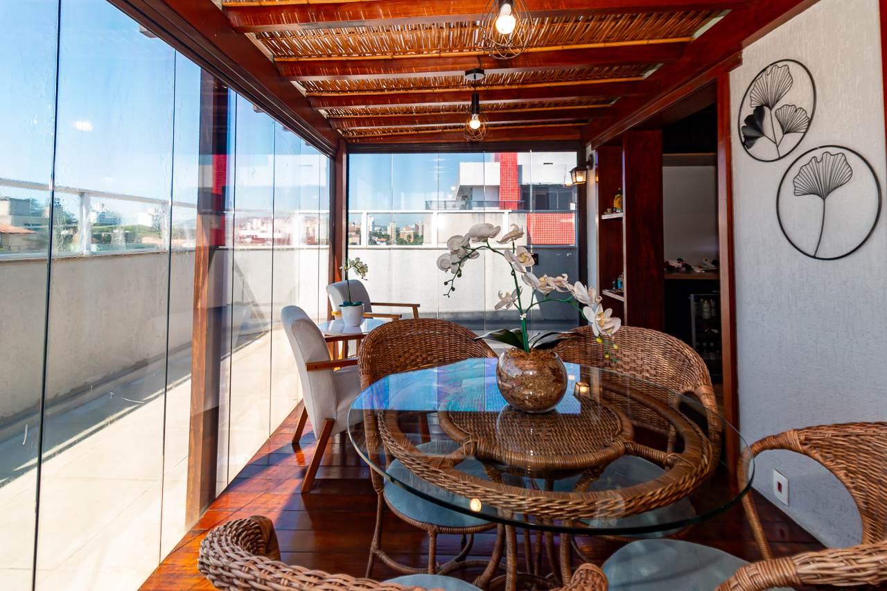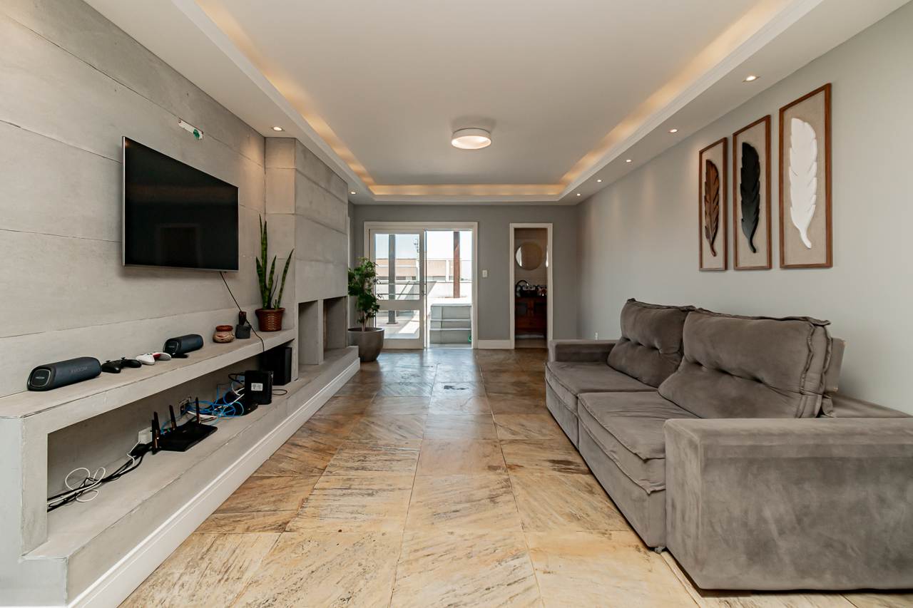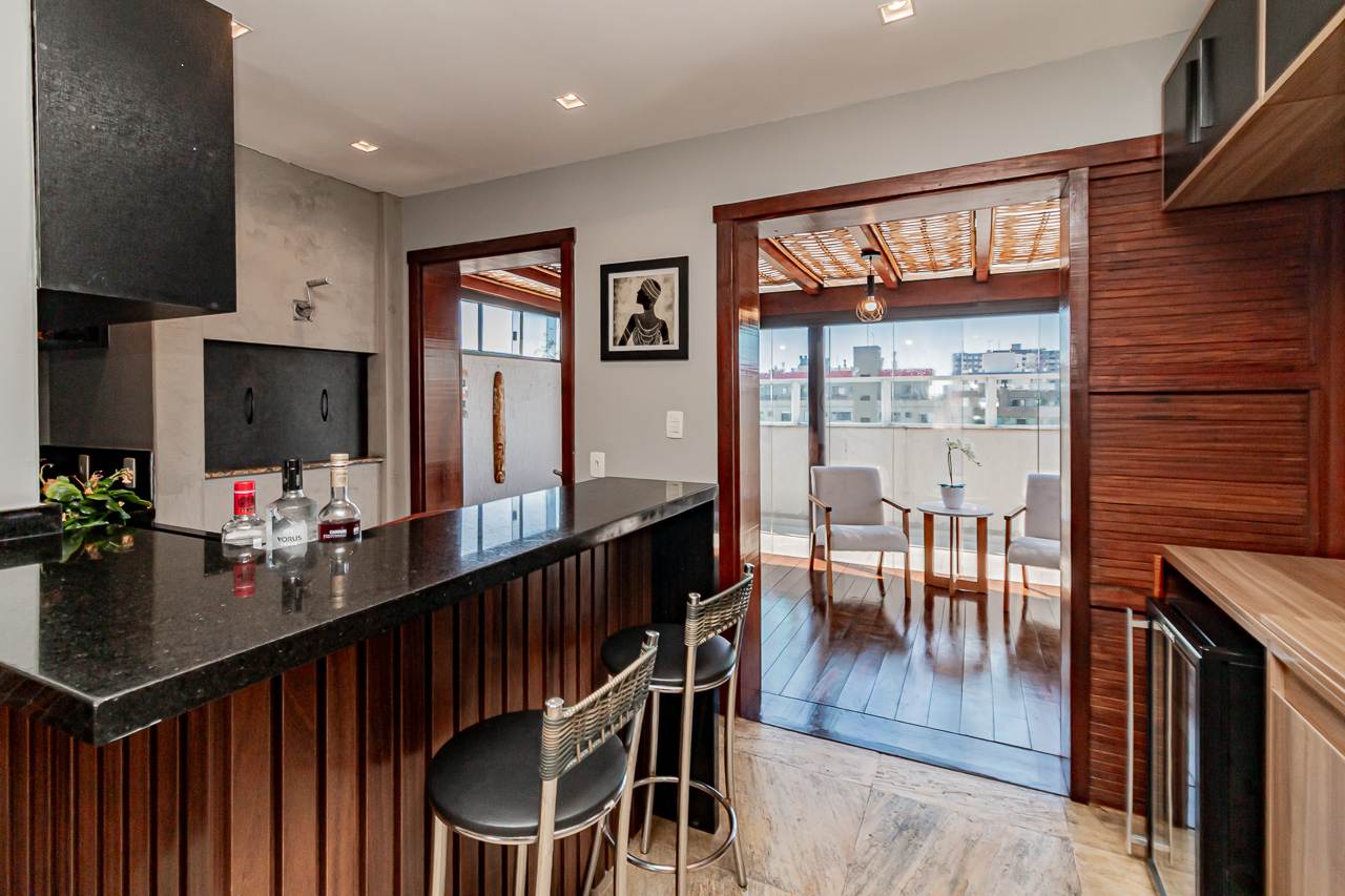 A propriedade oferece piscina, lareira, espaço gourmet com churrasqueira, varanda gourmet, e um terraço com vista aberta que tornará cada pôr do sol um espetáculo particular. Para seu conforto adicional, a cobertura conta com ar condicionado central, aquecimento elétrico e chuveiro a gás.