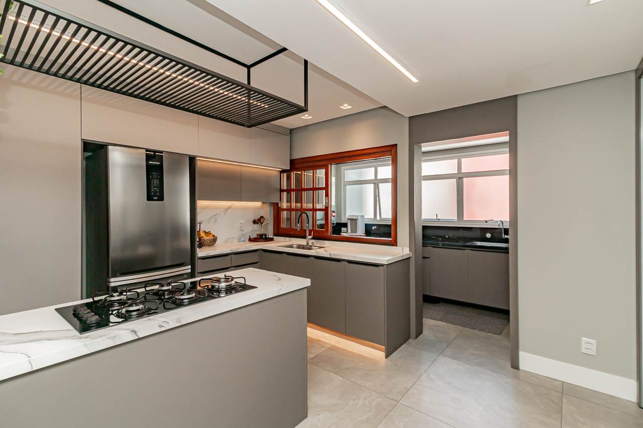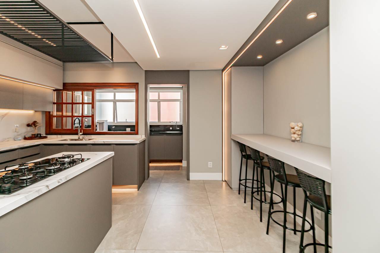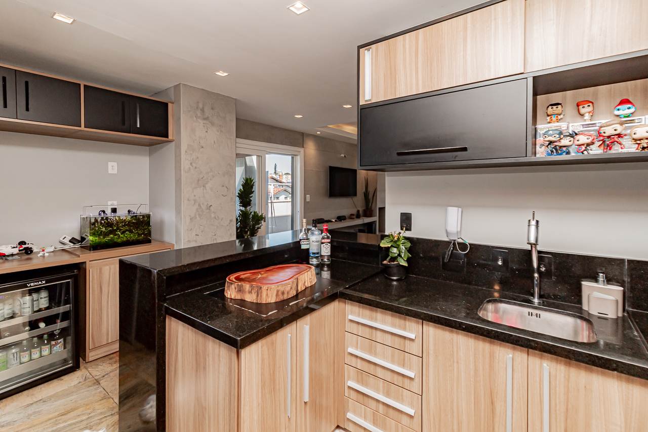 A cobertura dispõe de 3 espaçosos quartos, sendo 1 suíte e um lavabo adicional, perfeitos para acomodar sua família com total conforto. A ampla sala de jantar e a cozinha gourmet, recheada de armários embutidos, são um convite para receber amigos e familiares.