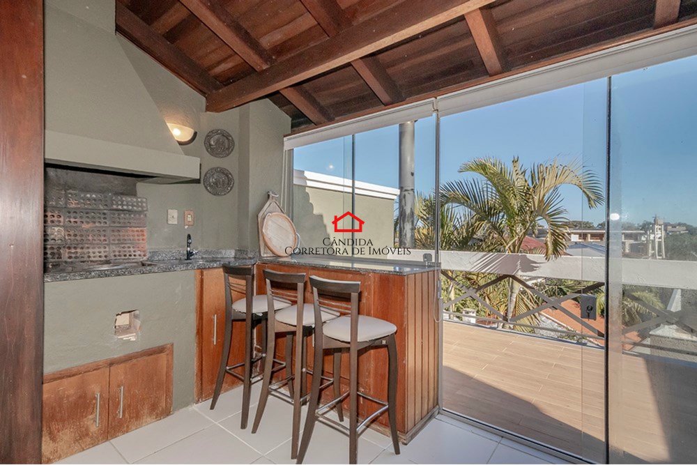 A casa surpreende com uma varanda gourmet com churrasqueira, áreas integradas que proporcionam um ambiente contemporâneo e acolhedor. Lareira, churrasqueiral e janelas grandes complementam o charme e a funcionalidade do espaço. A cozinha gourmet, equipada com armários embutidos, é um convite para preparar refeições inesquecíveis.Este imóvel único ainda oferece garagem para 3 carros, lavanderia, e segurança 24h com câmeras e alarme. Suas conveniências incluem, interfone, registro de água e gás individualizados, além de TV a cabo e internet.
